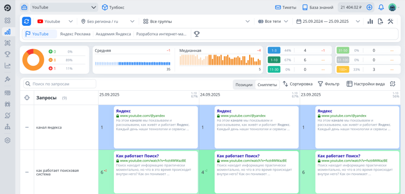 Чтобы проверить позиции видео, укажите ссылку на видео при создании проекта, например, https://www.youtube.com/watch?v=fvzt4WWazBE. Сокращенную ссылку с доменом youtu.be указывать нельзя!