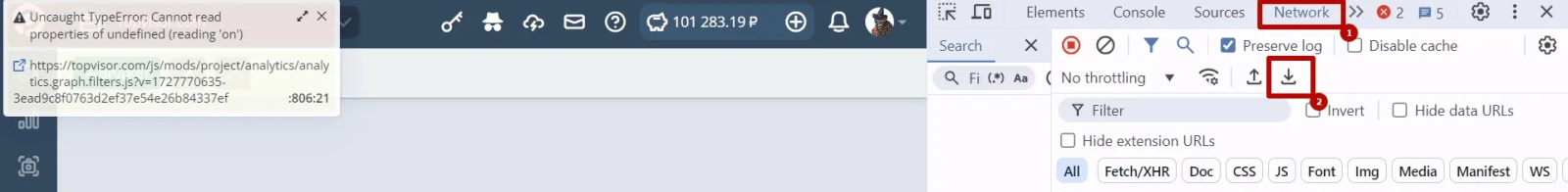 - Open Network tab and clickDownload — the file with the extension .HAR will be saved:
